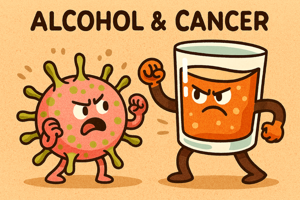 مطالعات اپیدمیولوژیک نشان دادهاند افرادی که الکل مصرف میکنند، در مقایسه با افرادی که الکل مصرف نمیکنند، در معرض خطر بیشتری برای ابتلا به برخی سرطانها هستند و هرچه فرد بیشتر الکل مصرف کند، خطر ابتلا به این سرطانها نیز بیشتر میشود. حتی مصرفکنندگان کممصرف نیز میتوانند در معرض خطر بیشتری برای ابتلا به برخی سرطانها باشند. به عنوان مثال، زنانی که فقط یک نوشیدنی در روز مصرف میکنند، نسبت به زنانی که کمتر از یک نوشیدنی در هفته مصرف میکنند، خطر ابتلا به سرطان پستان بیشتری دارند و این خطر در مصرفکنندگان سنگین و مصرفکنندگان افراطی الکل حتی بیشتر نیز میشود (3-7).