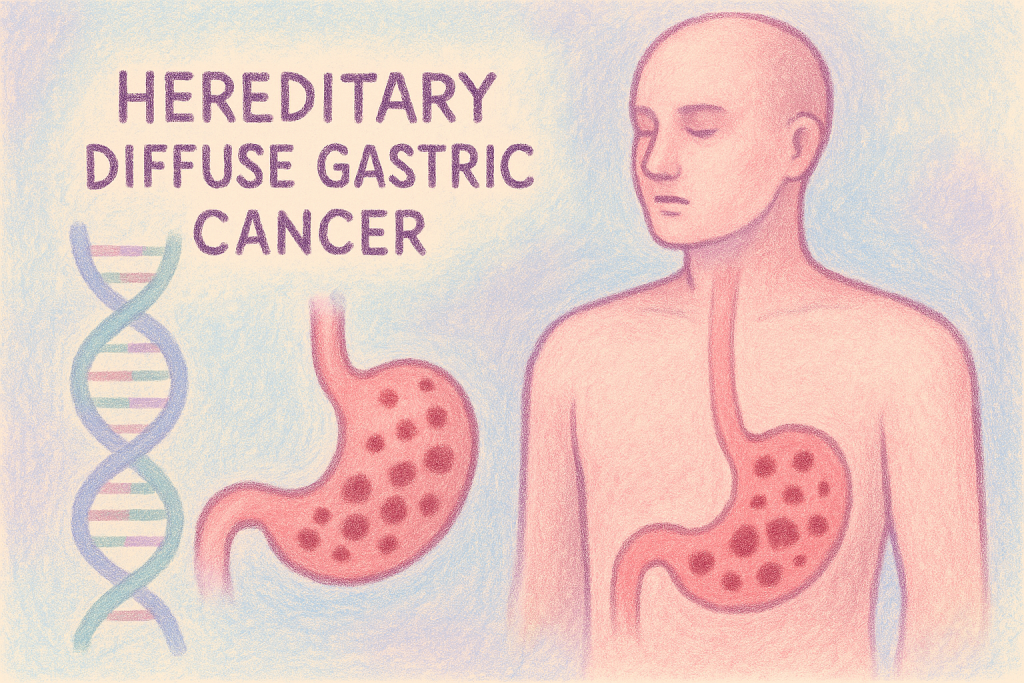 سرطان معده منتشر ارثی (Hereditary Diffuse Gastric Cancer; HDGC) نخستینبار در یک خانواده بزرگ بومی مائوری در نیوزیلند شناسایی شد. این افراد دارای یک واریانت پاتوژنیک ژرملاین در ژن CDH1 بودند [1]. از زمان این گزارش اولیه، مطالعات متعدد نشان دادهاند که HDGC یک اختلال نادر با الگوی وراثت اتوزوم غالب است که با افزایش خطر ابتلا به سرطان معده منتشر و سرطان پستان لوبولار همراه میباشد [1-4].