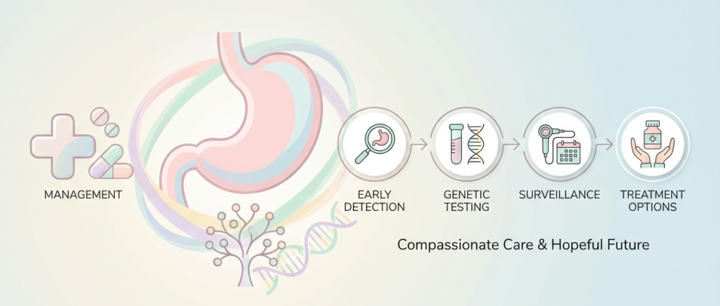 مداخله جراحی: گاسترکتومی کاهنده خطر گاسترکتومی کامل کاهنده خطر (Risk-Reducing Total Gastrectomy; RRTG) همراه با ازوفاژوژژنوستومی همچنان درمان انتخابی برای افراد دارای واریانت پاتوژنیک CDH1 محسوب میشود [1]. در نمونههای RRTG این بیماران، اغلب کانونهای … ادامه خواندن مدیریت (Management) سرطان معده منتشر ارثی